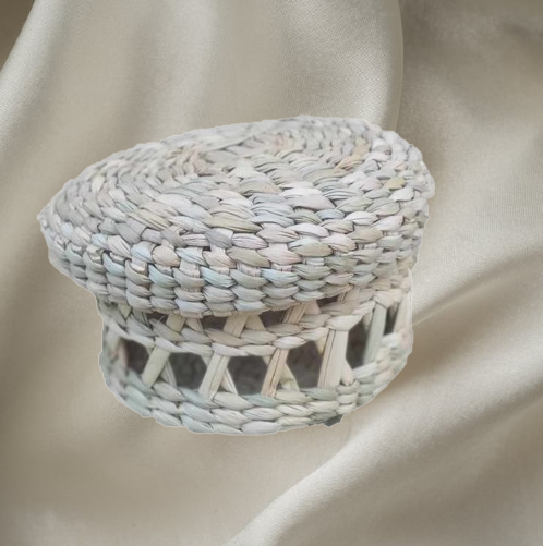 Boite de rangement ronde en jonc de mer en provenance de Madagascar