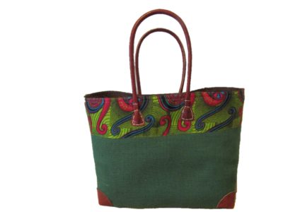 Panier en jonc habillage jute et wax